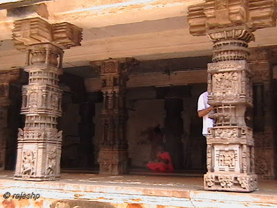In the narrow pillared corridor, the pillars are carved beautifully. The carvings on the pillar are very unique. No 2 pillars of the corridor are identical. The uniqueness of the each of pillars can be seen in the above snap.